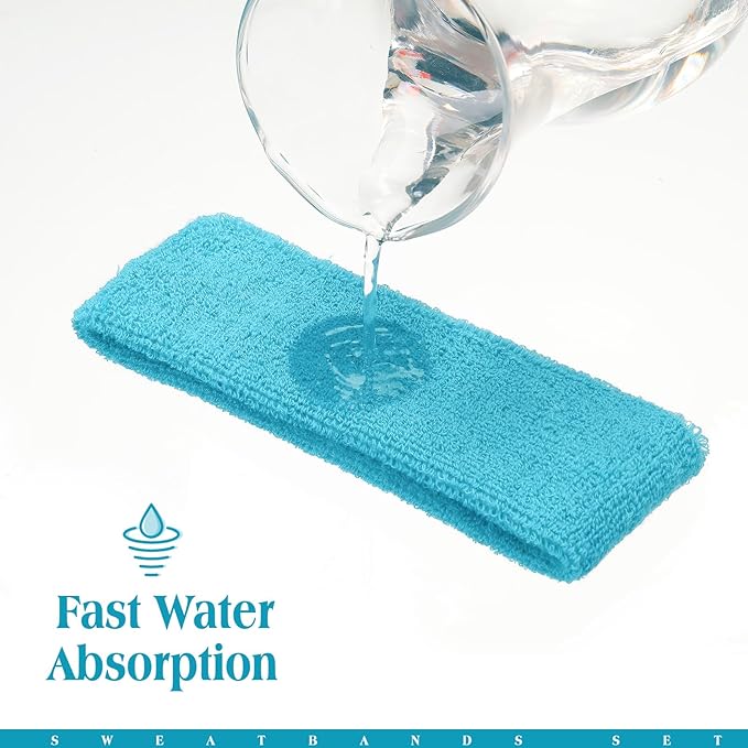 • Sweat-absorbent: the cotton headband absorbs your forehead's sweats efficiently and keeps sweat and mess hair away from your eyes; The sweat wristbands are helpful to wipe off your face's sweats