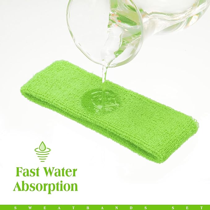 • Sweat-absorbent: the cotton headband absorbs your forehead's sweats efficiently and keeps sweat and mess hair away from your eyes; The sweat wristbands are helpful to wipe off your face's sweats