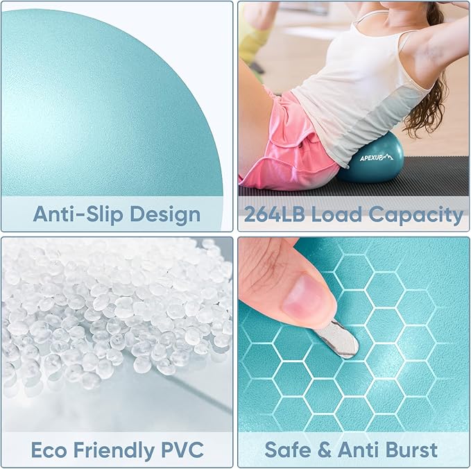 • [ANTI-BURST & ANTI-SLIP] Reinforced with a honeycomb structure for anti-burst protection, this small pilates ball can support up to 550 lbs of weight and will not suddenly burst even when pierced by sharp objects. The fine texture provides non-slip properties, ensuring a safe exercise experience.