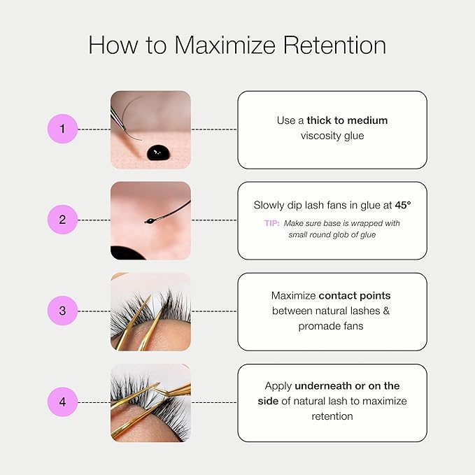 • STUNNING & DRAMATIC EFFECT — Curacoro LashFolio Promade Fans feature narrow fans that create a striking, dramatic effect for your client's lashes. Each fan is crafted with closer fans to produce high volume and definition, helping your client's lashes stand out with the bolder, thicker, and denser lash look in a crowd. Designed with longer stems that offer a larger bonding area, achieving great retention and a more voluminous lash look.