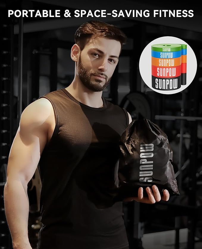• [Perfect for Beginners to Pros]:SUNPOW pull up bands include 5 bands with different resistance levels, ranging from Green (5-30 lbs) to Black (60-170 lbs), catering to all fitness levels from beginners to advanced users. Easily switch or combine bands for customized resistance.