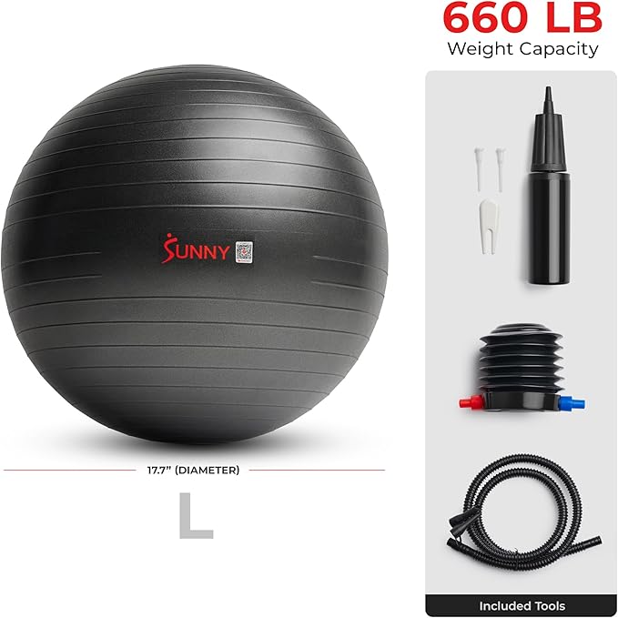 Sunny Health & Fitness Premium Anti-Burst Exercise Balls for Core Strength, Yoga, Pilates, Barre, Physical Therapy, Balance, Flexibility Non-Slip & Odorless