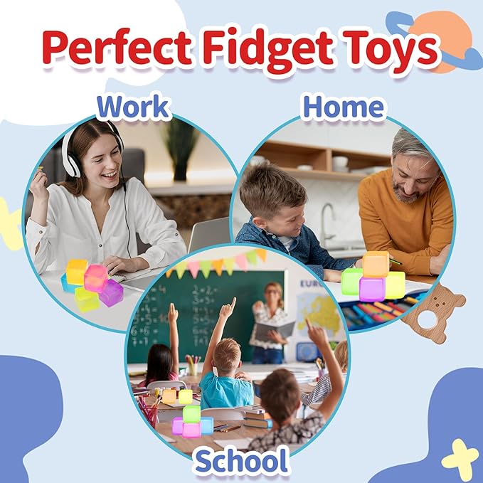 • 【Durable, Soft and Squishy】These stress anxiety toys are made of thick TPR outer layer and filled with high-density flowing gel, resilience against heavy use. Extremely flexible filler helps balance gripping and finger dexterity through repeated squeezing. Fidget toys and anxiety cubes also can be great desk toys for when you need to calm down and concentrate on the task at hands.