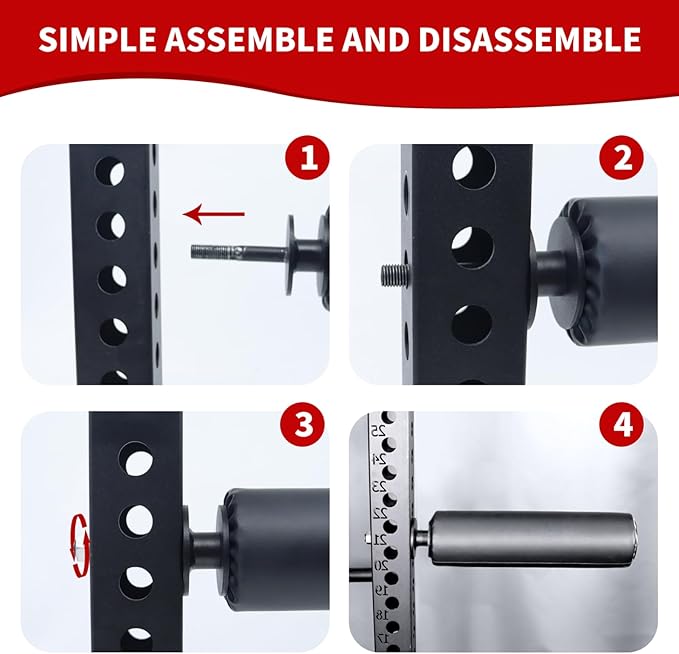 • 【Easy to lnstall】Single leg squat roller is easy to install, simply insert one end into the squat rack hole and tighten the nut. The single leg squat roller has 5/8”(16mm)0.7 inch (18 mm) or 1 inch (26 mm) hole diameter, of course, the nuts in the product parts are M16 and M24 and the nuts are 16*110 and 24*100 respectively. Please measure the hole diameter of the power rack before purchase to ensure perfect compatibility.