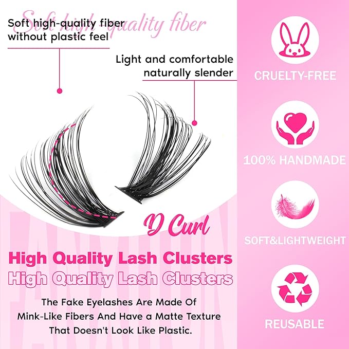 • This eyelash is handmade from high-quality and soft synthetic fibers. The thin eyelash cluster is exquisitely crafted, with each cluster soft; The independent cluster eyelashes do not obstruct the view, and the eyelash cluster is lightweight and almost weightless, making it comfortable to wear and suitable for most occasions; The simple and easy-to-use diy lash extension kit is the first choice for beginners