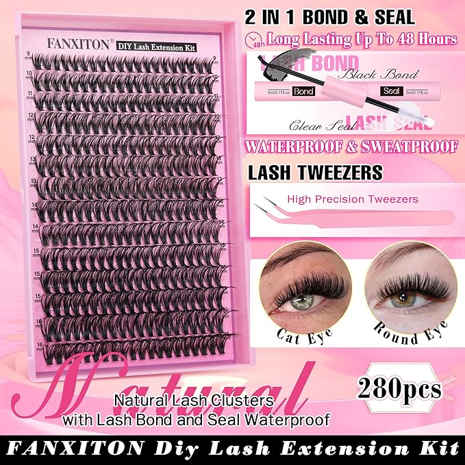 • FANXITON lash clusters kit, when used with lash bond and seal and lash tweezers, is simple and easy to apply. The strong lash bond ensures the clusters stay put for a long time, and the lash seal liquid keeps dust out and eliminates the stickiness from the glue