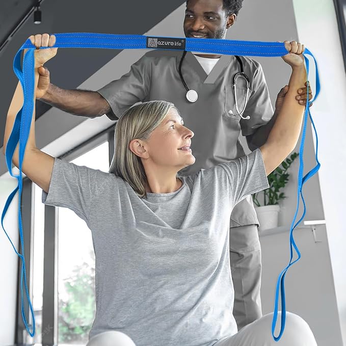 • 【BENEFIT】: Multiple hand-holds along the strap allows for progressive unassisted stretching with greater control. Use this stretch strap to prepare for daily activities, prevent injury, alleviate tightness, increase flexibility and improve range of motion.