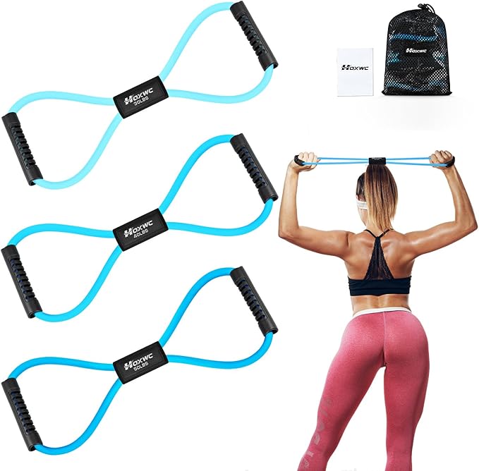 Figure 8 Resistance Band, Exercise Bands for Back, 8 Shaped Resistance Bands for Arms, Shoulder, Leg Stretching, Physical Therapy, Yoga, Pilates, Home Gym Workout Equipment for Women Men