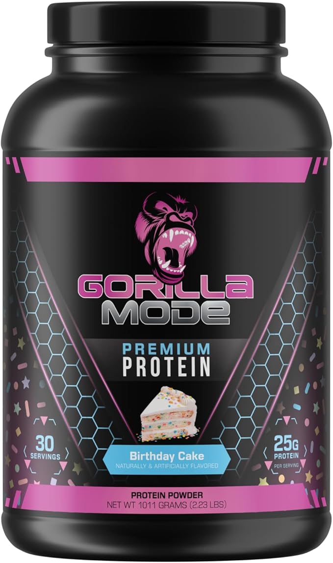 Gorilla Mind Premium Whey Protein - Birthday Cake, 25 Grams of Whey Protein Isolate & Concentrate,Recover and Build Muscle (30 Servings)
