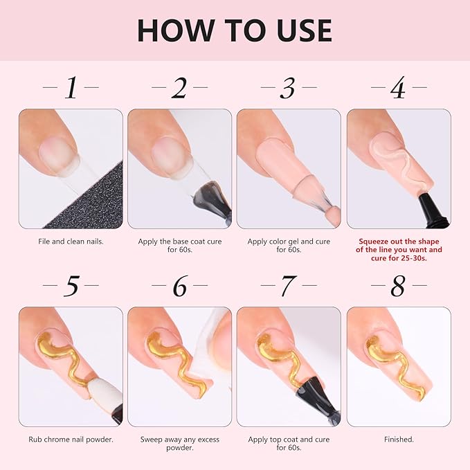 • Easy to Control: Makartt 3D gel is user-friendly and easy to apply. No need extra tool, just squeeze the tube to create your desired designs. Super fine powder, easy to apply; To get the best nail effect, need base coat and no wipe top coat. This chrome nail kit also good for beginners, just follow the instructions and you'll get it done.