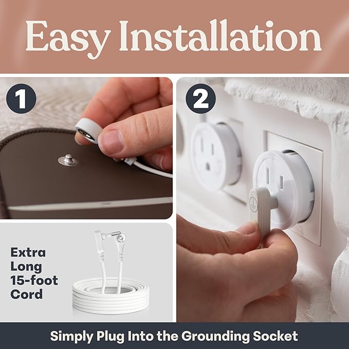 • SETUP IN JUST TWO STEPS: Effortlessly connect to the earth with our 2-step easy setup. Just plug the 15-foot cord into any outlet, and enjoy grounding benefits anywhere in your home.