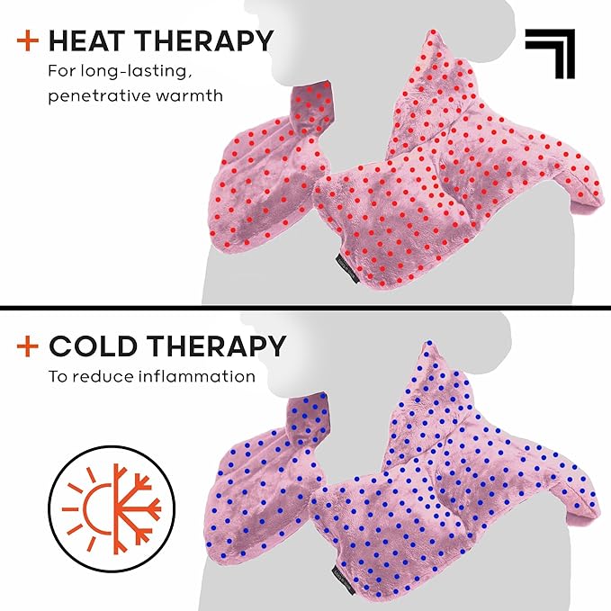 • AROMATHERAPY NECK & SHOULDER WRAP: Relieve stress, tension, muscle pain, stiffness and cramping with this neck and shoulder wrap heating pad, powered by the aromatherapeutic benefits of natural herbs and grains. Warm it in the microwave or chill it in the freezer for maximum therapy.
