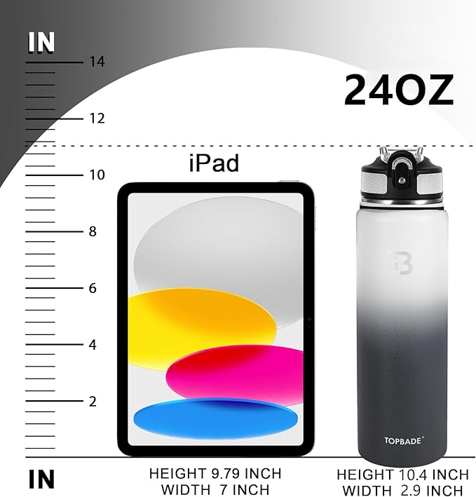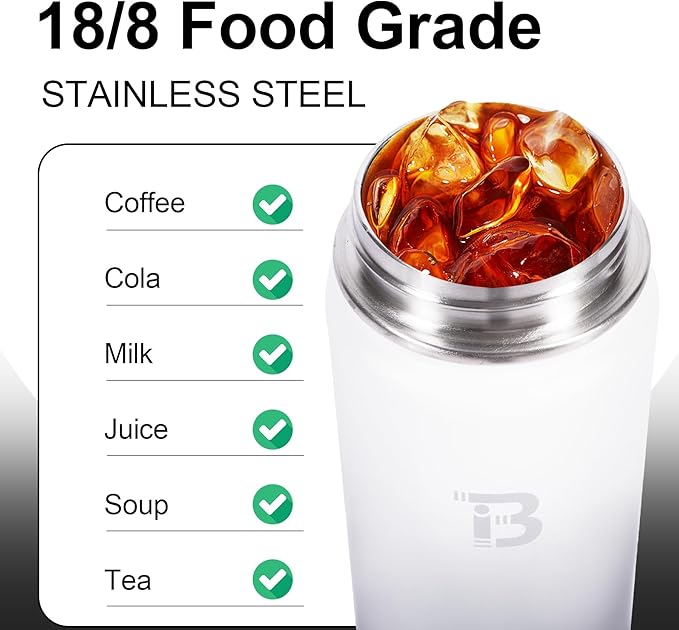 • DOUBLE WALL INSULATION: Our water bottle is made from high-quality 18/8 food-grade stainless steel, rust-proof, BPA-free, lead-free, and easy to wash. This wide mouth water bottle features double-walled vacuum insulation, which can keep your beverages cold for 24 hours and hot for 12 hours with a fresh taste. The wide mouth design is perfect for ice cubes and easy to clean.