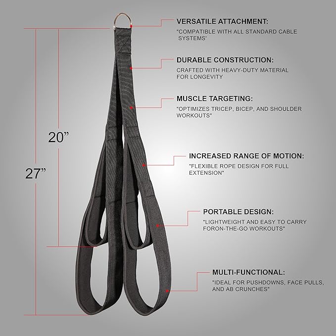 • 𝐃𝐮𝐫𝐚𝐛𝐥𝐞 𝐓𝐫𝐢𝐜𝐞𝐩 𝐑𝐨𝐩𝐞 𝐀𝐭𝐭𝐚𝐜𝐡𝐦𝐞𝐧𝐭 𝐰𝐢𝐭𝐡 𝐒𝐮𝐩𝐞𝐫𝐢𝐨𝐫 𝐆𝐫𝐢𝐩 𝐟𝐨𝐫 𝐇𝐨𝐦𝐞 𝐆𝐲𝐦𝐬: Featuring a strong grip design for maximum stability, this tricep rope cable attachment is built to withstand rigorous use in both gym equipment and home workout setups. It’s an excellent choice among lat pulldown attachments, perfect for enhancing your home gym workout equipment.