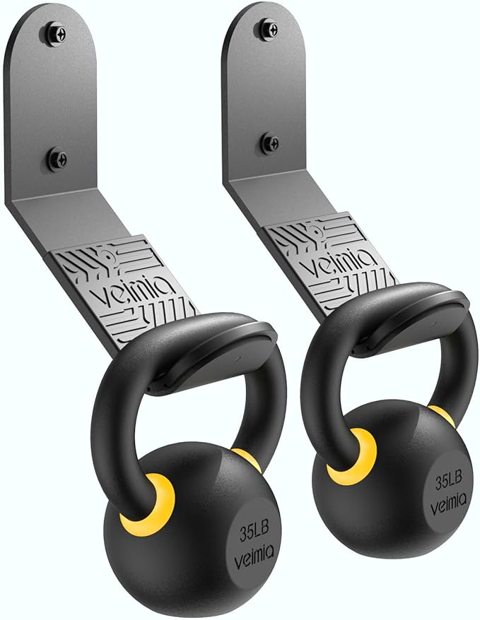 • ADVANTAGES: Our home gym storage are made of solid steel, and the black powder coating increases its stability and durability. The hook with circular arc design are better fit to the handle of the kettlebell. In addition, the solid steel is wrapped with a rubber pad to avoid the friction between the handle of the kettlebell and the solid steel from damaging their surfaces.