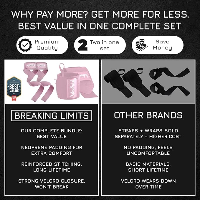 Breaking Limits Gym Straps Weight Lifting Wrist Wraps Bundle – Workout Lifting Straps for Deadlift – Wrist Straps for Weightlifting Men & Women - MuΓ±equeras Para Gym