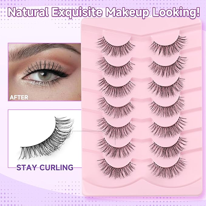 • High Quality Strip Eyelashes Wispy: Our C curl eye lashes use superfine synthetic fibers, air feeling and super soft, as your owns lashes, looks natural and stay curling. With double-layered crisscross structure, our false eyelashes are knot-free and won’t fall apart
