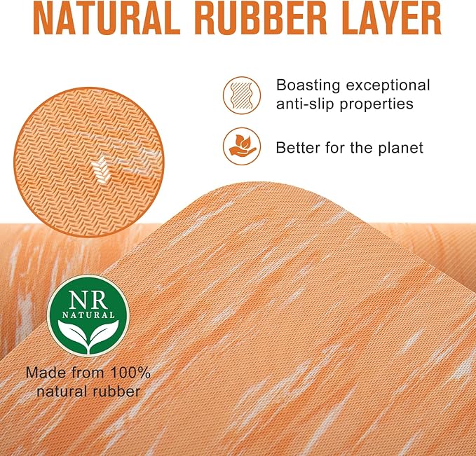 • DOUBLE NON-SLIP & ECO-FRIENDLY - Crafted with 100% natural rubber and recyclable TPE, it's PVC-free and leaves no extra burden on the planet. The rubber layer offers exceptional slip resistance, supporting your practice even during sweaty sessions. Meanwhile, the TPE bottom surface incorporates textured patterns that provide optimal traction and support.
