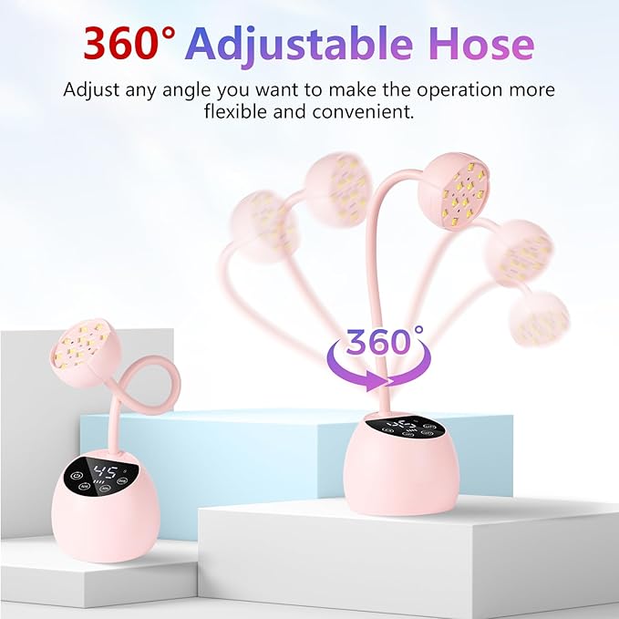 • 360° Degree Adjustable Direction: Makartt UV nail lamp features a flexible gooseneck, allowing you to bend and maneuver it to any angle for optimal curing. It ensures full coverage of gel nails, including hard-to-reach areas like your pinkies and thumbs, for flawless results every time.