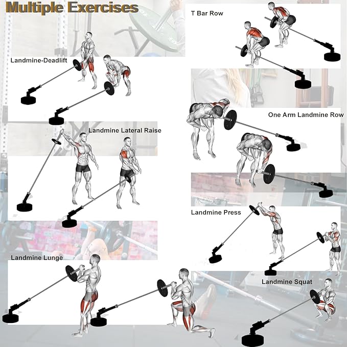 • Multiple Exercises of the T Bar Row Attachment:360° rotating features allows landmine attachment for barbell multiple workouts : squats, presses, rows, lunges, cleans and laterals, and various core exercises.Furthermore, the Landmine rows enables you to engage in a variety of training sessions while standing, in a high-kneeling position, and in a half-kneeling position.