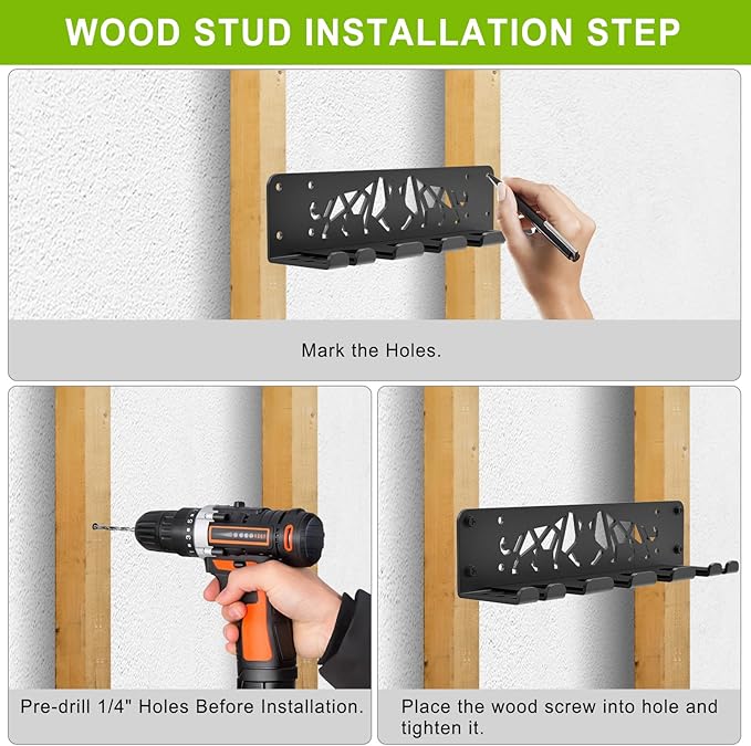 • 【Easy Installation】Our rack is easy to install and remove. The package includes all mounting hardware, including 4 expansion screws for mounting on concrete walls and 4 wood screws for wood beams. The screw holes are spaced 12 inches, 14 inches and 16 inches apart to fit standard wall studs, Compatible with 12-inch, 14-inch and 16-inch wood studs.