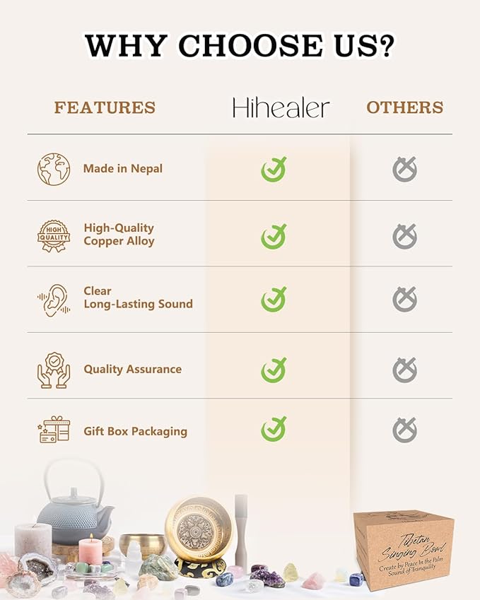 • Handcrafted by Nepalese Artisans: Each bowl is hand-hammered by skilled local artisans in Nepal using traditional techniques; This craftsmanship creates a unique tone and texture—no two bowls are exactly alike, just like you