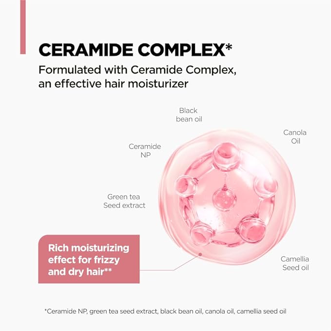 • ·CERAMIDE COMPLEX: Deeply moisturizes frizzy and dry hair, enhancing hair elasticity.