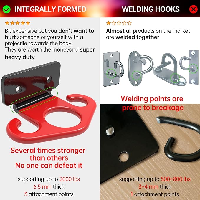 • Resistance Bands Anchor Design Allows For Options: Closed ring for critical applications, and open hooks for when you need it quickly and temporarily; in-line holes to allow for installation to a single wall stud; provision for doubling up when you need the extra load capacity.