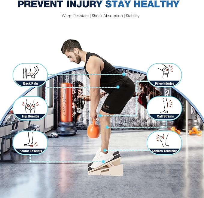 • Sturdy & Reliable Build for Heavy Use – Crafted from premium wood, this durable slant board supports up to 400 lbs, making it perfect for daily use in home gyms, fitness studios, or rehabilitation centers.