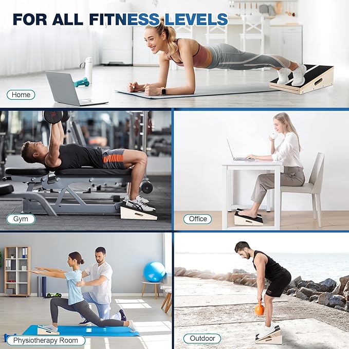 • Versatile Tool for All Fitness Goals – Whether you're recovering from an injury, improving flexibility, or enhancing athletic performance, this multi-functional slant board is designed to meet your needs. Suitable for runners, dancers, athletes, and fitness enthusiasts of all levels.