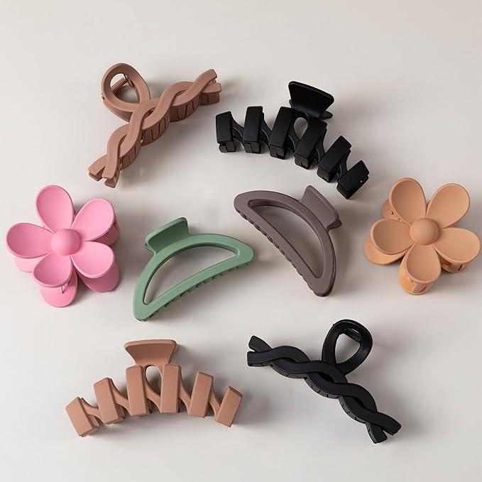 • MULTIPLE HAIRCLIPS SETS: A set of 8, 4 styles, large grab clips in black and light coffee, flower clips in pink and light coffee, simple and elegant, 8 different grab clips make your day full of special, suitable for most women.