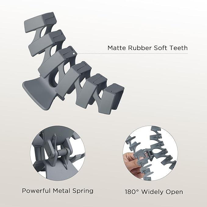 • ANTI-SLIP DESIGN: The claw clip has a certain thickness that is not easy to break, and will not hurt the hair. The lock tooth design of the anti-slip grip can greatly handle any thick or thin hair. It is suitable for thick, thin, curly or straight hair.