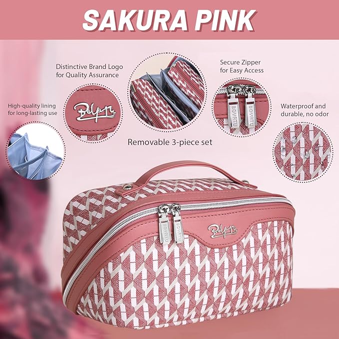 • Travel Makeup Bag Set of 3: This BOYATU travel makeup bag with five compartments comes with two small makeup pouches, ensuring optimal organization for your skincare products and cosmetics. Nice for your travel, business trips, vacations, outdoor activities and picnics.