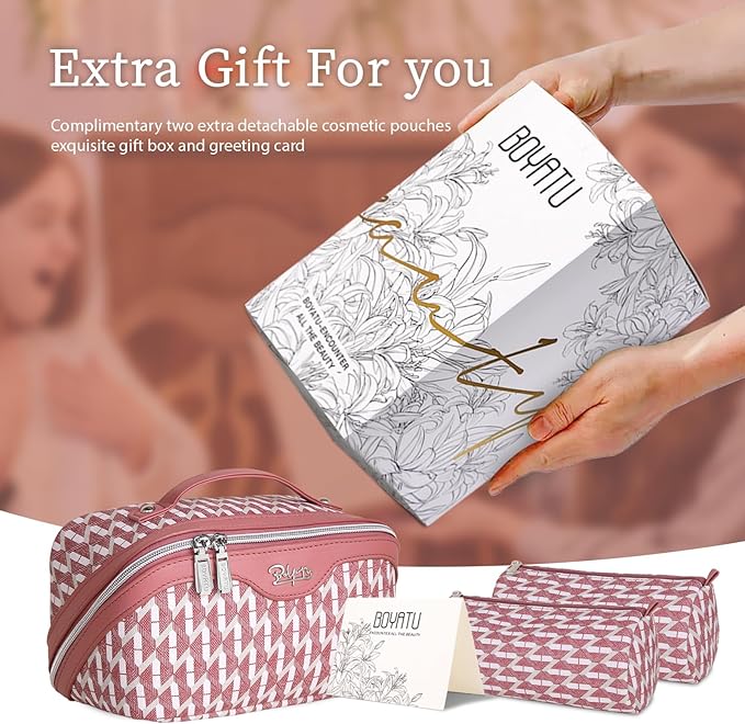 • Travel Gifts for Women: This travel essentials for women comes beautifully packaged in an exquisite gift box, with a thoughtfully designed greeting card. It will be a great travel accessories for women.This makeup organizer bag is a good gift idea on Valentine's Day, Mother's Day, Birthdays, Christmas, and more.