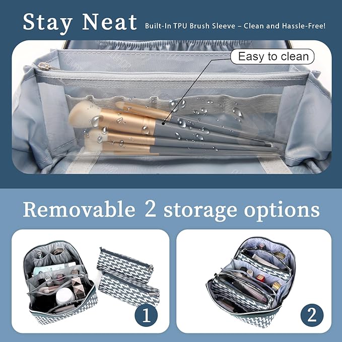 • Waterproof Leather Travel Make up Bags for Women: This makeup travel bag is made of high-quality Vegan leather, soft to the touch, waterproof and easy to clean, not easy to fade. Stain-resistant material stays flawless for years, not months.