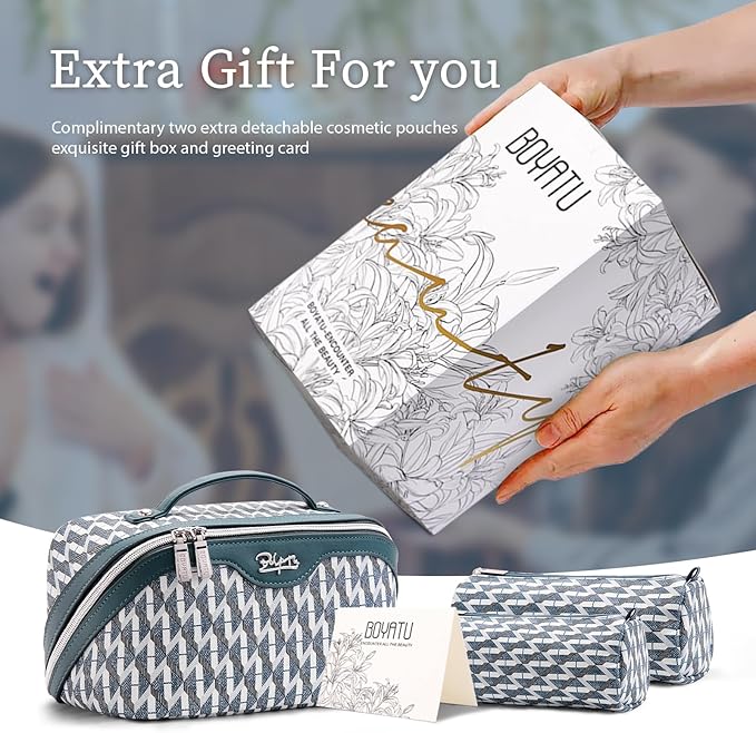 • Travel Gifts for Women: This travel essentials for women comes beautifully packaged in an exquisite gift box, with a thoughtfully designed greeting card. It will be a great travel accessories for women.This makeup organizer bag is a good gift idea on Valentine's Day, Mother's Day, Birthdays, Christmas, and more.