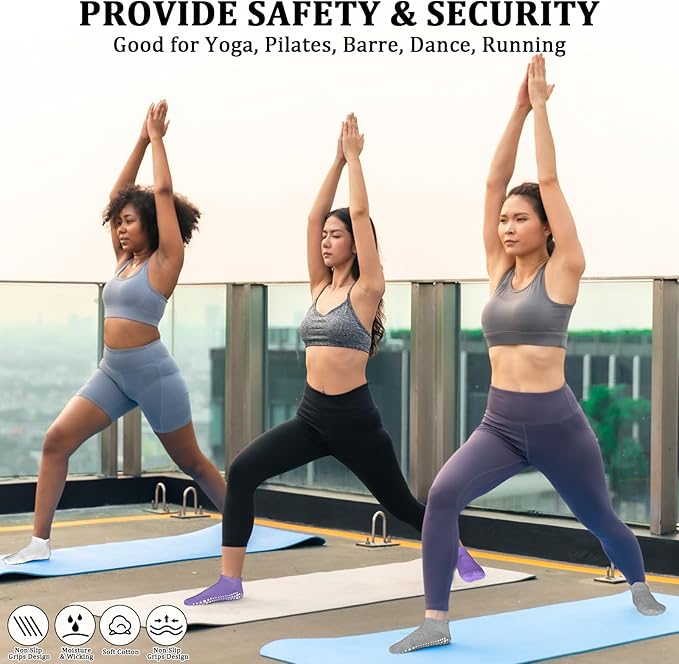 • ALL PURPOSES IN ONE: SkiBeaut grips socks are ideal for not only yoga, but also Pilates, Barre, Ballet dance, Bikram, Martial Arts, Trampoline,gym and other sports. Whether you are at home or exercising, we can bring you a full range of foot comfort and sense of security.It is widely used in studio, family, travel, hospital and other occasions.