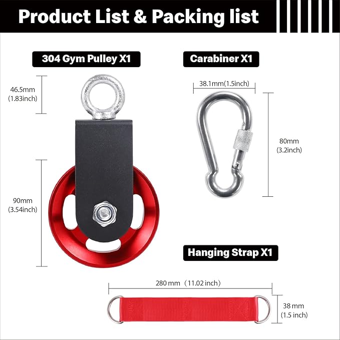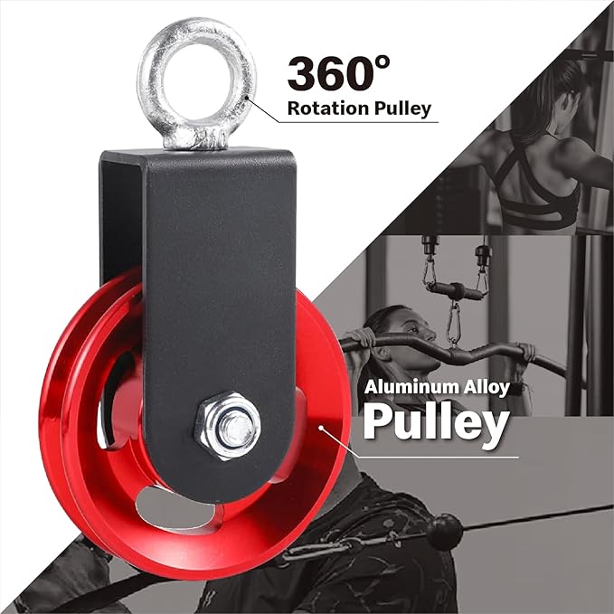 • 【Premium aluminum】The weight pulley system is made of high-quality aluminum alloy, durable, reasonably priced, rust-proof, wear-resistant, corrosion-resistant, highly solid structure, which is safer and more practical than traditional pulleys. The best choice for fitness equipment and tools