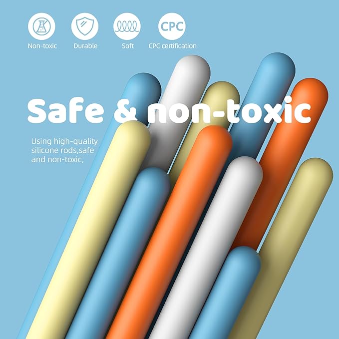• Safe & Portable Play - Crafted with CPC certified premium non-toxic silicone, this toy includes an intricate silicone board and 20 silicone rods, all packaged in a colorful box. This ensures safe and convenient play anywhere. An ideal gift, offering a therapeutic and satisfying activity for all ages.