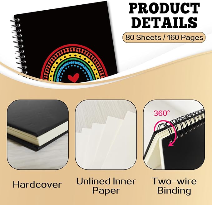 • Practical Design: Our notebooks are bound with double spiral coils, can be folded 360° freely without creases, and the pages can be easily torn off without falling apart. The unique design and color scheme on the black hard cover add a personalized touch to your note-taking experience and make your notebook no longer boring