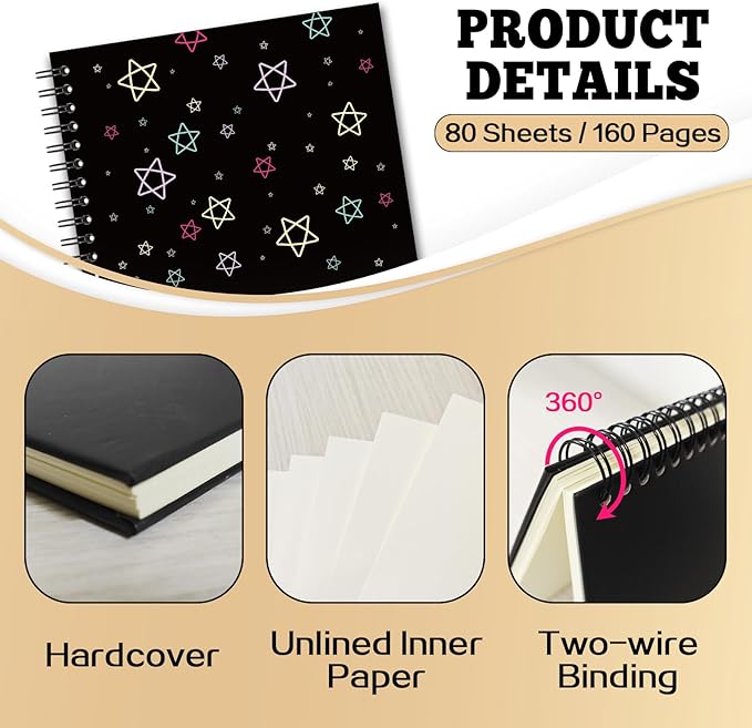 • Practical Design: Our notebooks are bound with double spiral coils, can be folded 360° freely without creases, and the pages can be easily torn off without falling apart. The unique design and color scheme on the black hard cover add a personalized touch to your note-taking experience and make your notebook no longer boring