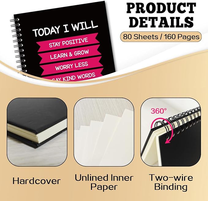 YAZMEEN Inspirational Blank Spiral Notebook(160 Pages) Today I Will Hardcover Notebook Mental Health Awareness Gift College Encouragement Gift Funny Journal Gift for Colleague Friend Teacher Student