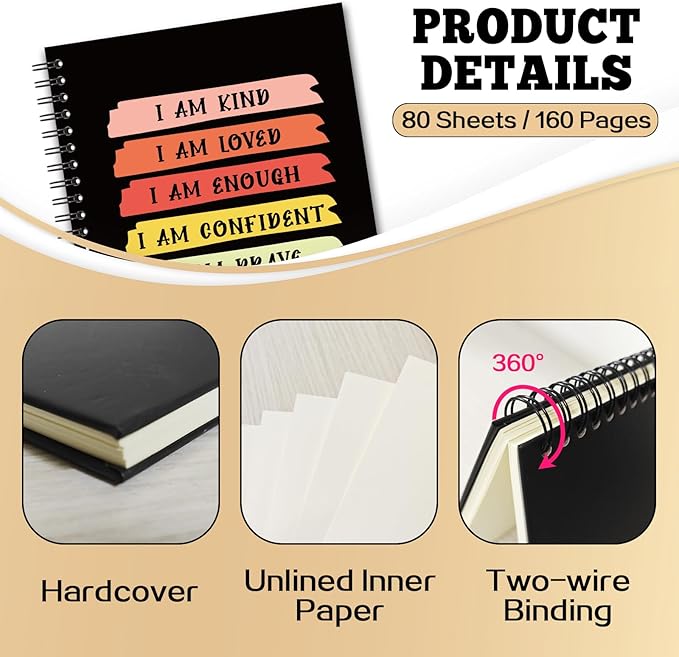 YAZMEEN Inspirational Blank Spiral Notebook(160 Pages) I am Kind I am Loved Hardcover Sketchbook Positive Gifts Funny Motivational Gifts Notebook for Women Men Teen Teacher Student Colleague Friend