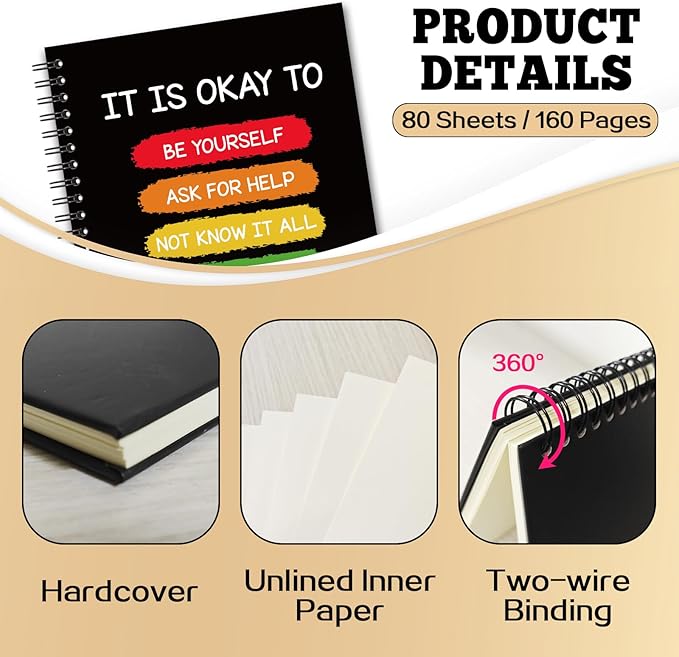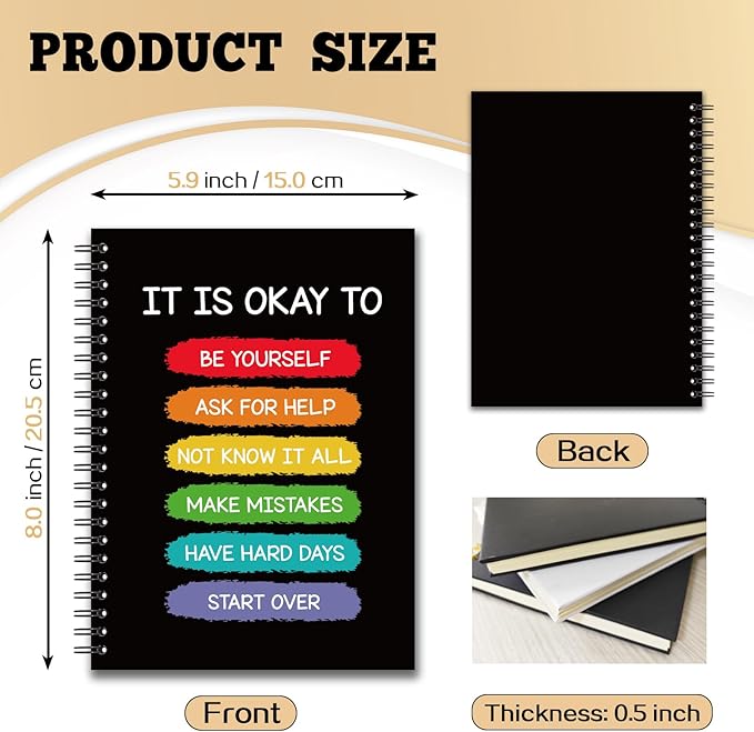 YAZMEEN Inspirational Blank Spiral Notebook(160 Pages) It is Okay to Be Yourself Hardcover Notebook Mental Health Awareness Gift Funny Motivational Gift Journal for Teen Teacher Student Office Work