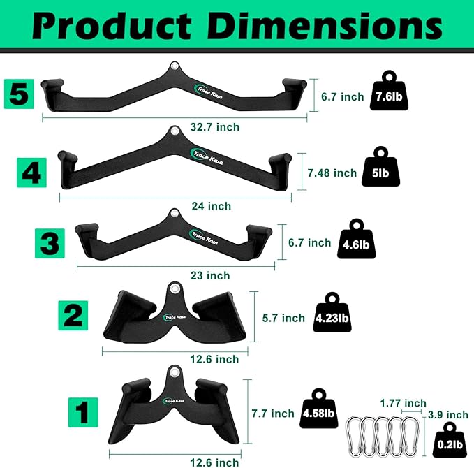 • Multi Model Cable Machine Attachment: Our lat pulldown machines set has 5 models to choose from, No. 1 is narrow gym handles for cables, No. 2 is narrow outside handles, No. 3 and No. 4 are middle mag grip lat pull down bar, last are the combinations of No. 1&4. The home gym equipment set also has other cable machine accessories, snap hook carabiners. This workout equipment home gym is your ideal choice.