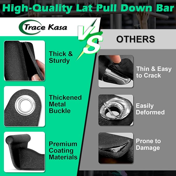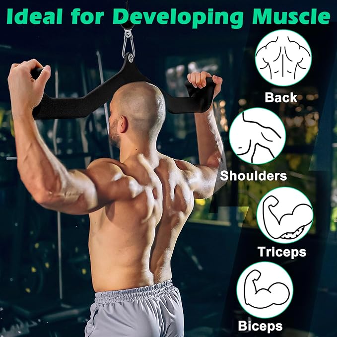• Reliable Quality Grips: At home gym must haves workout accessories is this lat pull down attachment set, constructed of heavy duty steel and premium coating rubber, makes the close grip lat pull down handle thick, sturdy and feeling good to touch. The lat pulldown bar also has thickened metal buckle designed, will not easy to deform. Our products lat bar will give you a excellent and safe workout experience!