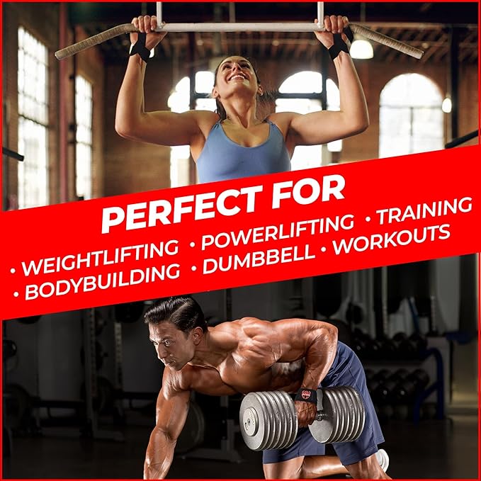 • VERSATILE USE: - Perfect for a variety of strength training exercises, including bodybuilding, powerlifting, deadlifting, and general strength training. These fitness straps for men and women are great for gym workouts as well as home fitness routines.