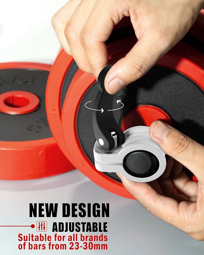 • ✔MULTI-SIZE: Our Barbell collars can meet all your size needs. Unique design weight bar clamps accessories upgrade, accurate to every millimeter :1inch 23MM,24MM,25.4MM 27MM 28MM and 30MM ,The piston handle can adjust the tightness by itself, it will not loosen over time, durable, choose it you no longer worry about the Size mismatch problem!