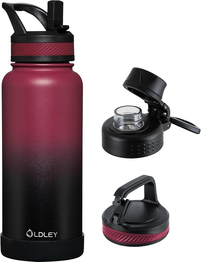 • 3 LIDS: YES, the OLDLEY comes with THREE different 100% LEAK PROOF lids. These 3 caps are designed for convenient drinking on-the-go, with a wide-mouth opening for quick ice filling and cleaning. The handle lid simplifies beach and camping adventures, while the straw lid suits cycling and gym sessions. Plus, the spout cover is perfect for hiking and hunting.
