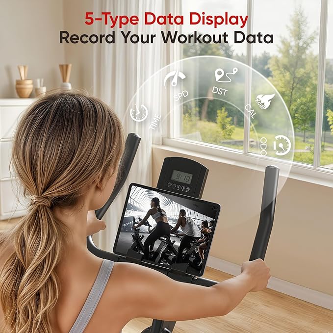 • 【Customized Your Workout Plan】The monitor can capture your time, spd, dst, cal, and odo. The unlimited tension adjusting levels allow for various uses, from a quick change of pace to full-scale cross-training, from warming up to cooling down before and after a workout